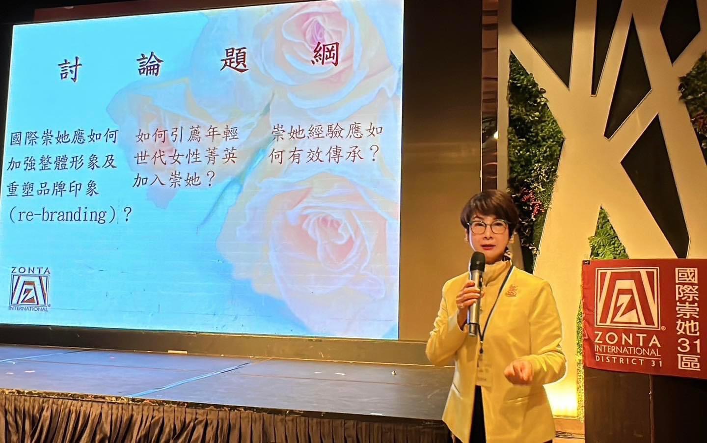 2024 國際崇她31區第一分區會議,於四月十三日上午09:00在典華幸福大樓(大直店) 5樓日出廳樓舉行。計有14個社,含台北ㄧ社,台北二社、新北社、台北三社、新竹社、花蓮社、台北欣社、桃園社、苗栗社、台北彩虹社、台北都會社、桃園牡丹社(本次因故未參加)、基隆海洋社、花蓮二社(新成立),一共來了13個社,報名165位實到160位社員與會,創下歷年來的最高紀錄!開幕儀式係由身兼主辦社及會議主持人的台北三社葉樹姍社長及第一分區監督沈啟致歡迎詞後熱烈展開。