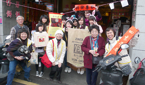 | 2011.01.29 | 於城隍廟旁義賣春聯,為新竹縣歡呼兒協會募款。學員們不懼寒流,熱心推銷,共計賣得15,000(含社姐捐贈)。 |