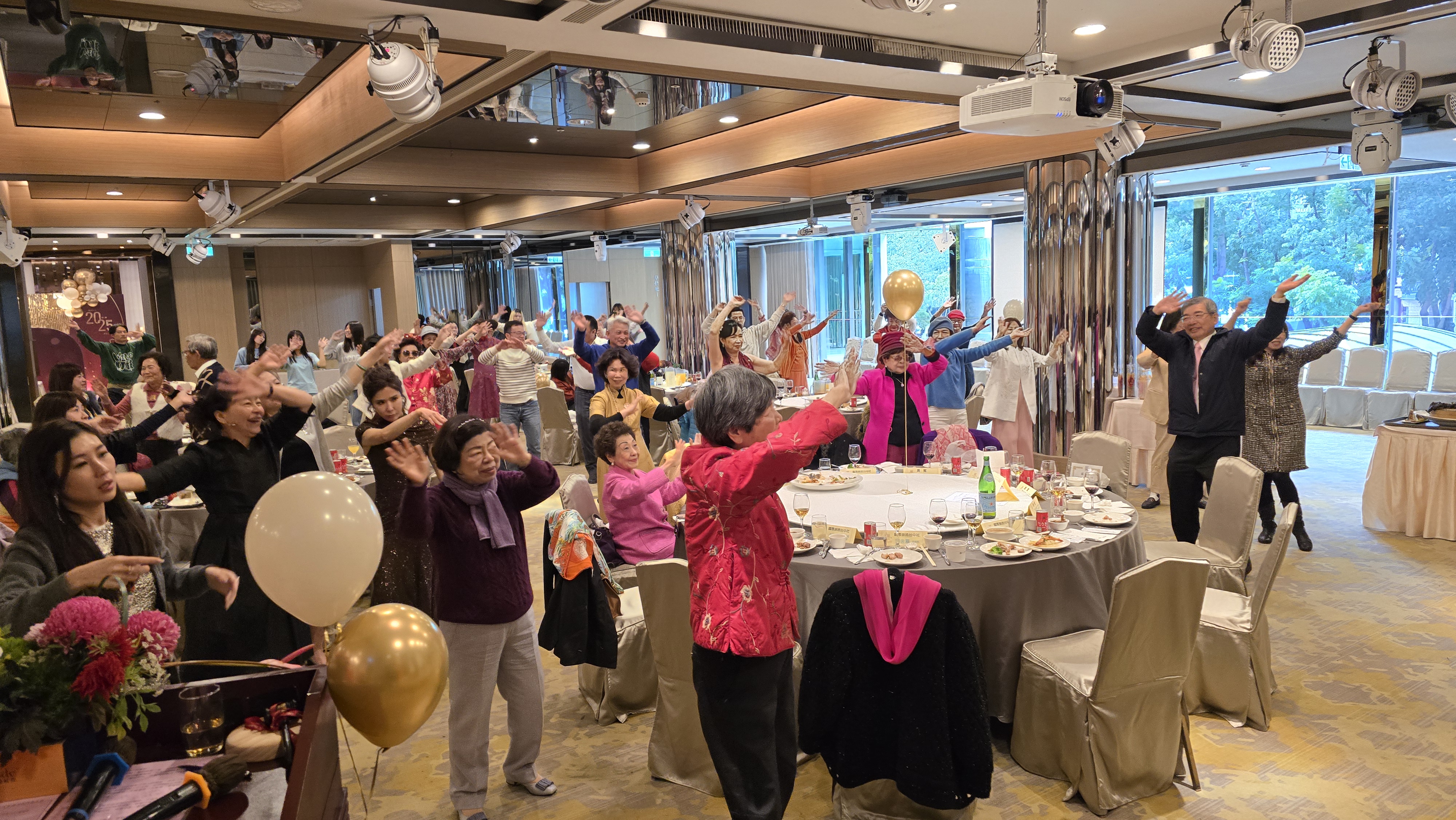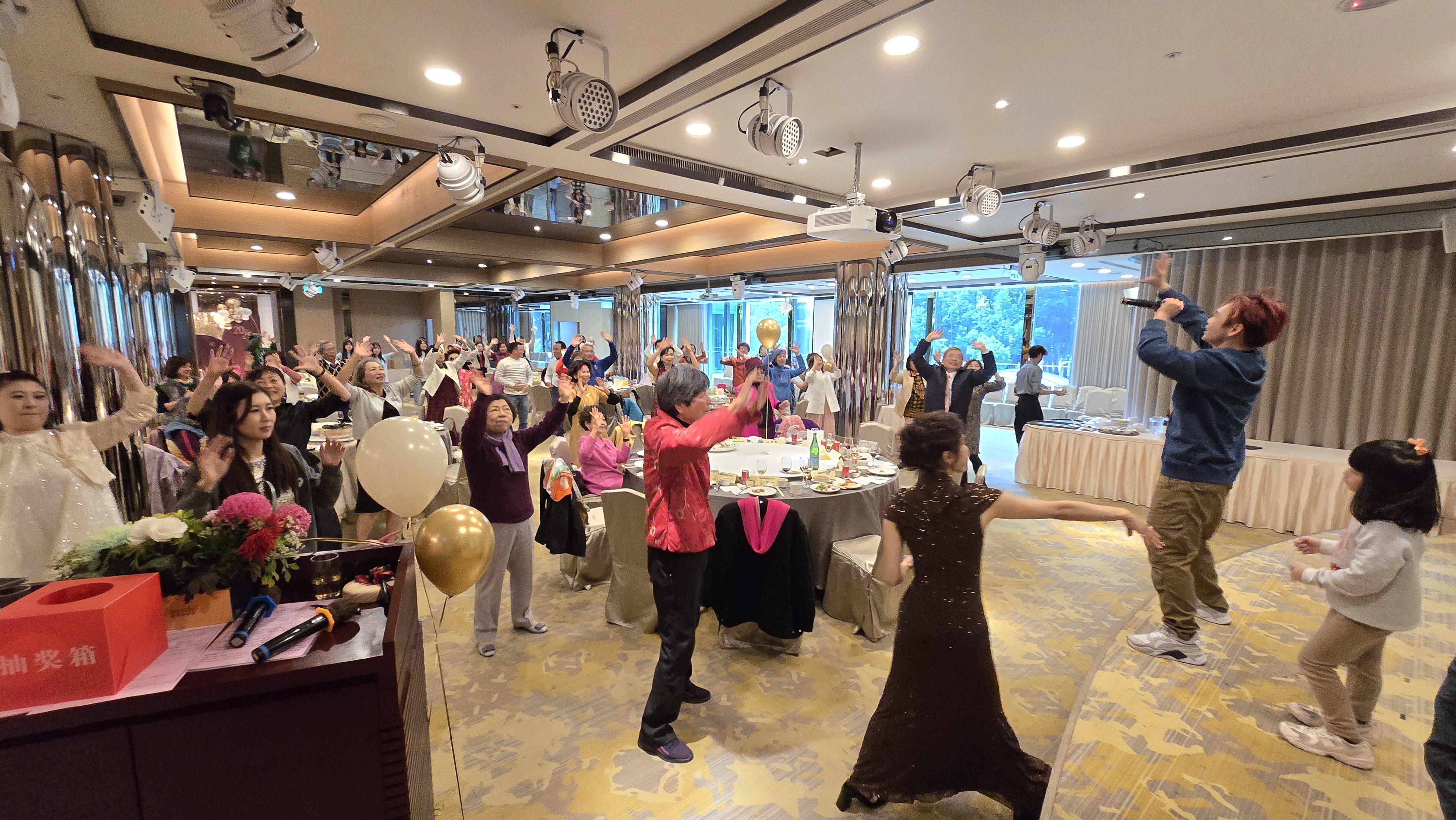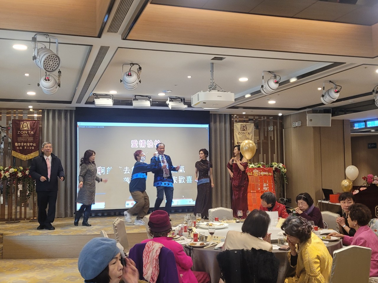 開場: 1.進場 正式禮服派對~全體社姐 2.社長上台致迎賓詞 ~~午宴開始~~ 3.歡唱~甜蜜蜜~社姐 4.歡唱~快樂出航~社姐夫 5.金蛇鬧元宵~炒錢趣 6.弘文 Z Clubs 表演 7.抽幸運彩金 8.東海 Gloden Z 表演 9.帶動跳~阿宏老師Hi翻天 |
