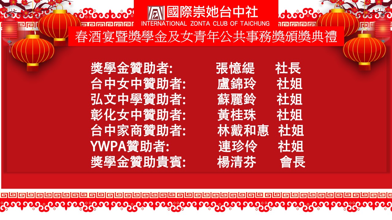 2025國際崇她台中社春節聯歡暨獎學金&YWPA獎頒獎典禮