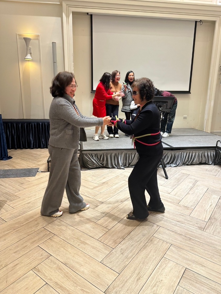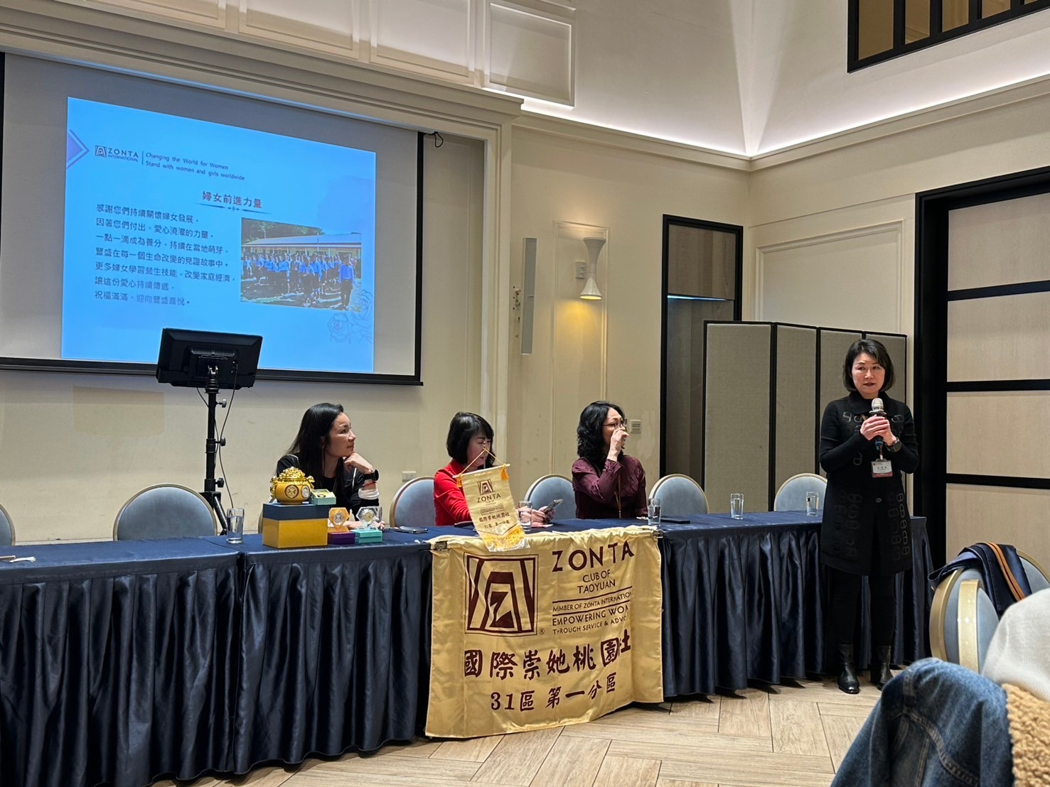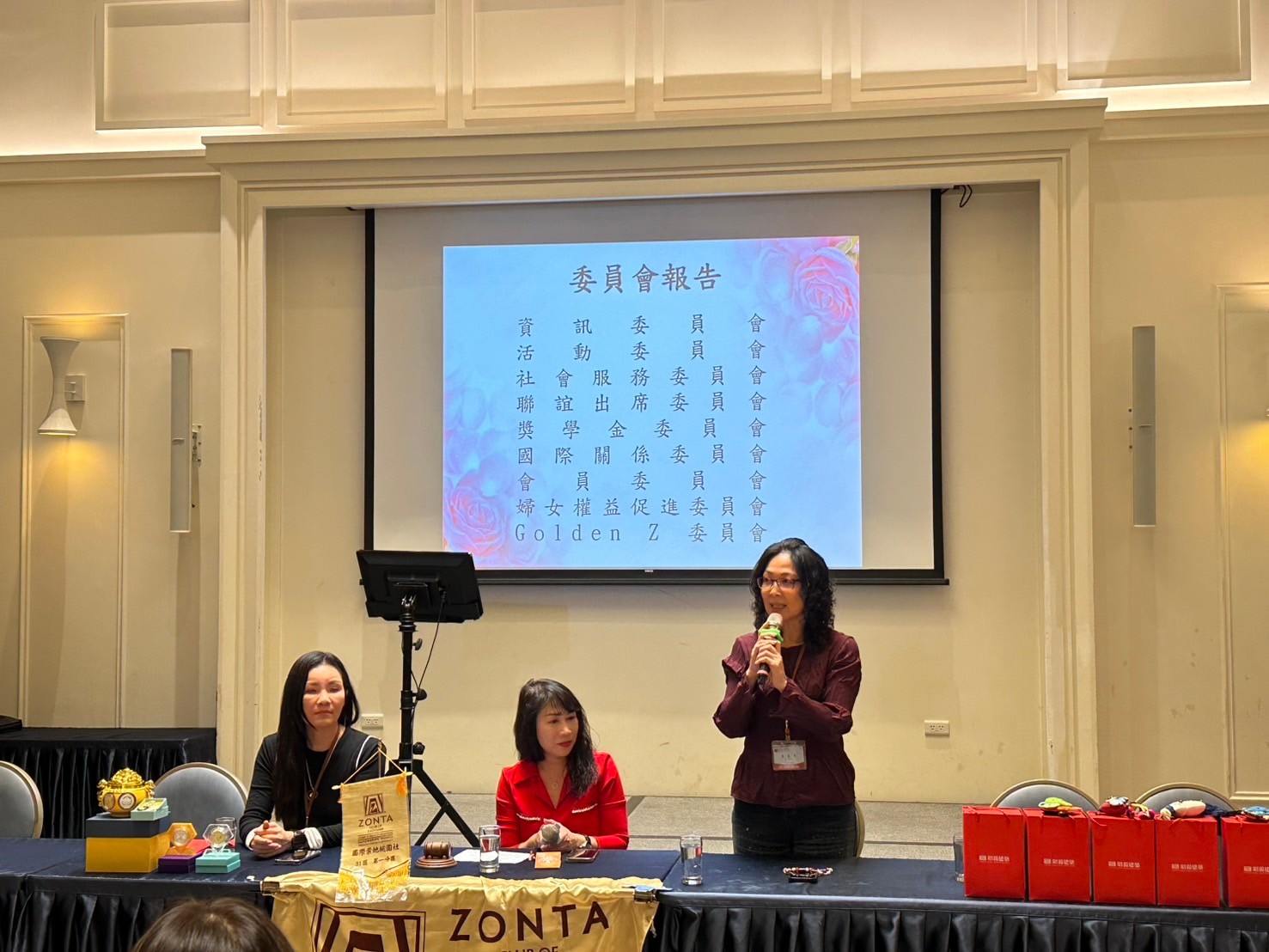 接著由婦女權益委員會呂雅蕙委員長分享「崇她國際總社所執行的各項服務計畫」,包括倡導性別平等、終結性別暴力、結束童婚、擴大接受教育的機會、成為知情的倡議者、對暴力侵害的婦女行為說〝不〞及採取性別平等的氣候行動等議題。委員長更以親身參與的亞洲地區服務計畫歷程詳細說明,有尼泊爾跨區合作服務2023-2024、蒙古第三分區服務2016-2023、寮國國際服務2015-2018等,從計畫發起至執行成果一一以照片對照分享,讓我們了解國際崇她在關懷國際婦女上所付出的努力及影響力。簡報結尾以:「因著您們的付出、愛心澆灌的力量,一點一滴成為養分持續在當地萌芽,豐盛在每一個生命的見證故事中,幫助更多婦女學習營生技能、改變家庭經濟,讓這份愛心持續傳遞,將成為弱勢及特殊境遇婦女前進的力量」,以上的幾句話也正是我們國際崇他桃園社持續努力的目標及動力。