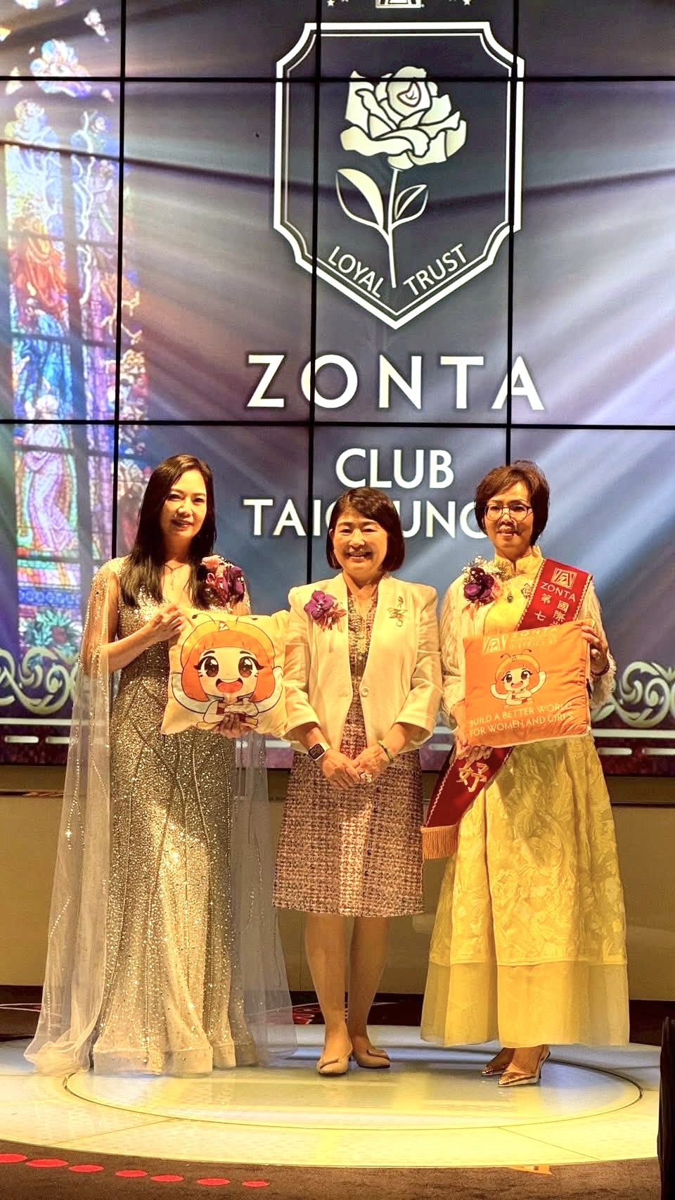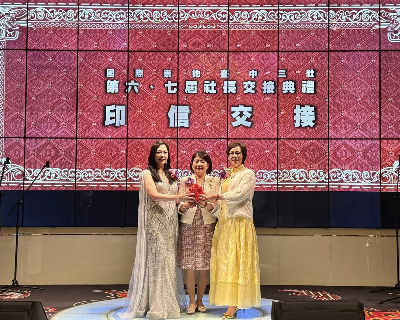 5月25日,大家共同參與這場精彩盛大的社長交接典禮,感謝靜宜社長在過去一年中的付出貢獻心力和卓越領導。在這段期間,靜宜社長帶領台中三社贊助的彰化愛樂團,共有超過100多位的學生及家長遠赴日本大阪進行公益演出。當天有超過一千位嘉賓出席慈善音樂會,其中包括了日本的政要、旅日華僑及與台中三社締結姊妹社的參與,充分展現了社團在國民外交方面的成功。