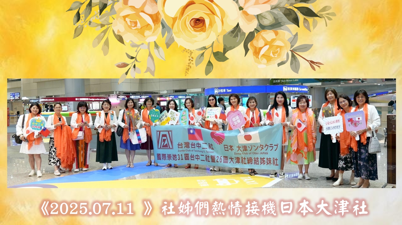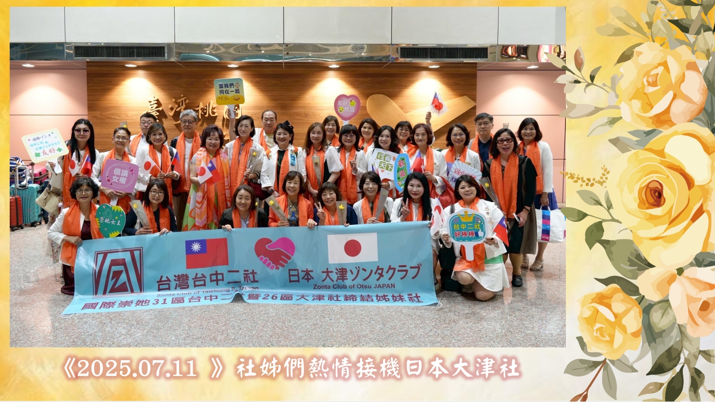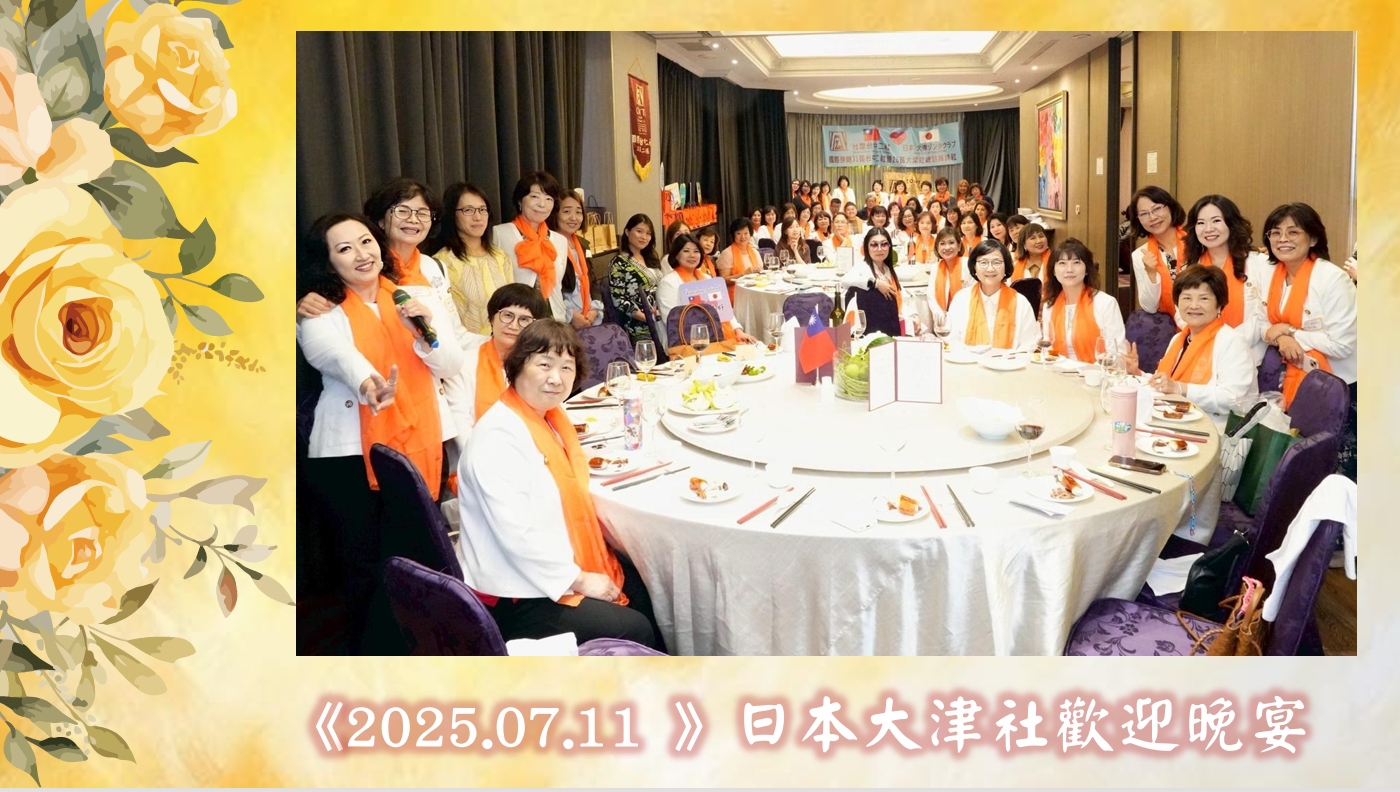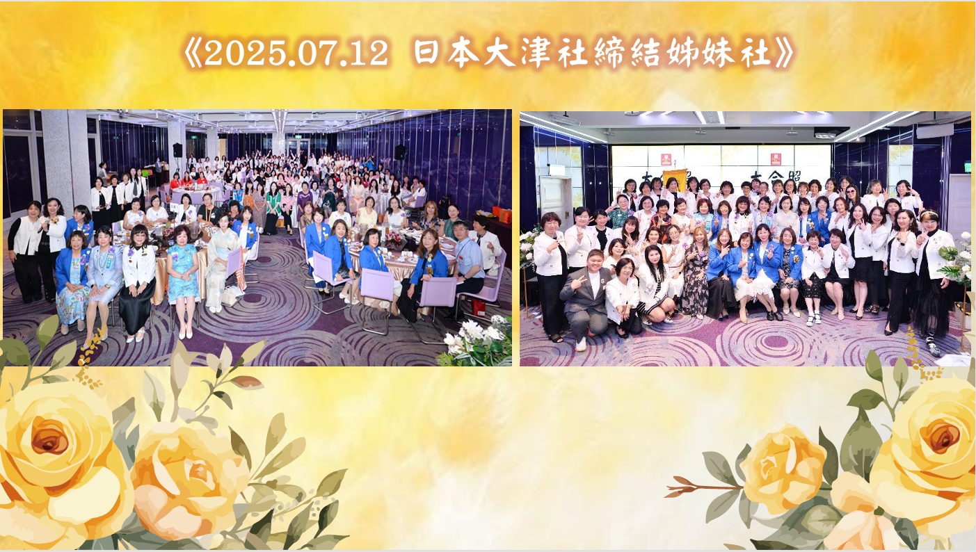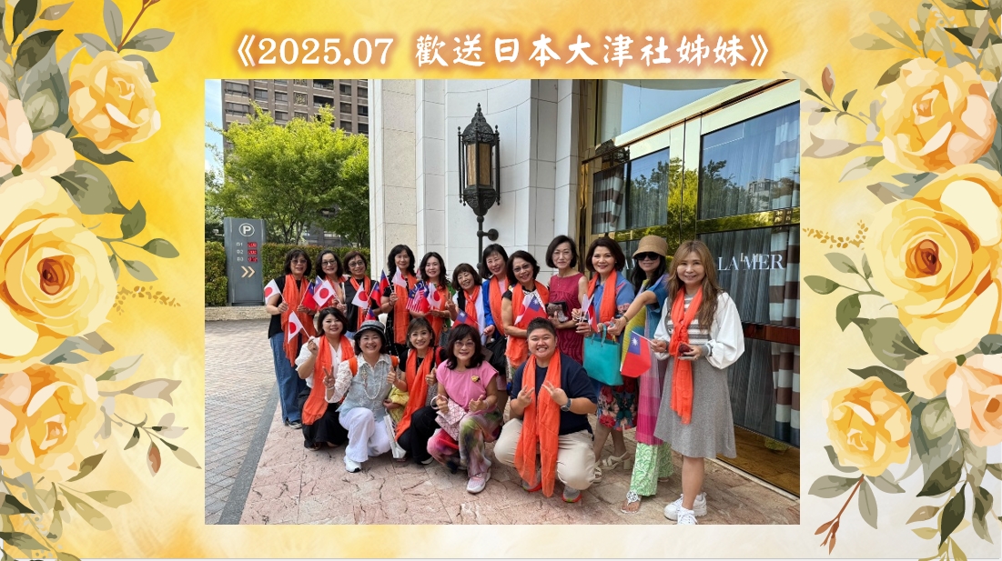 2025年7月11日,日本大津社前來台灣與台中二社締結姊妹社,二社姊妹們熱情接機,邀請大津社姊們一同參與歡迎晚宴。