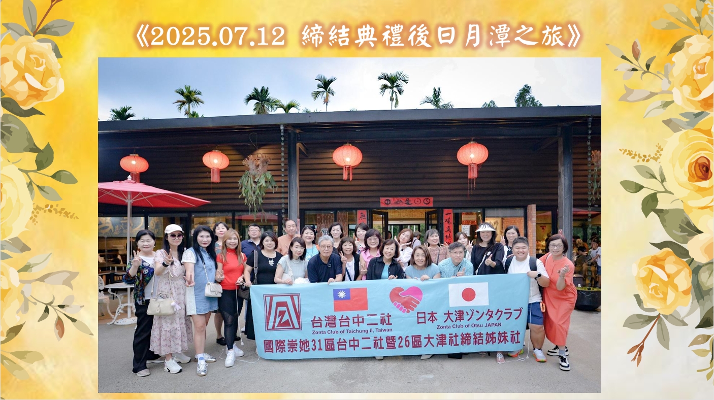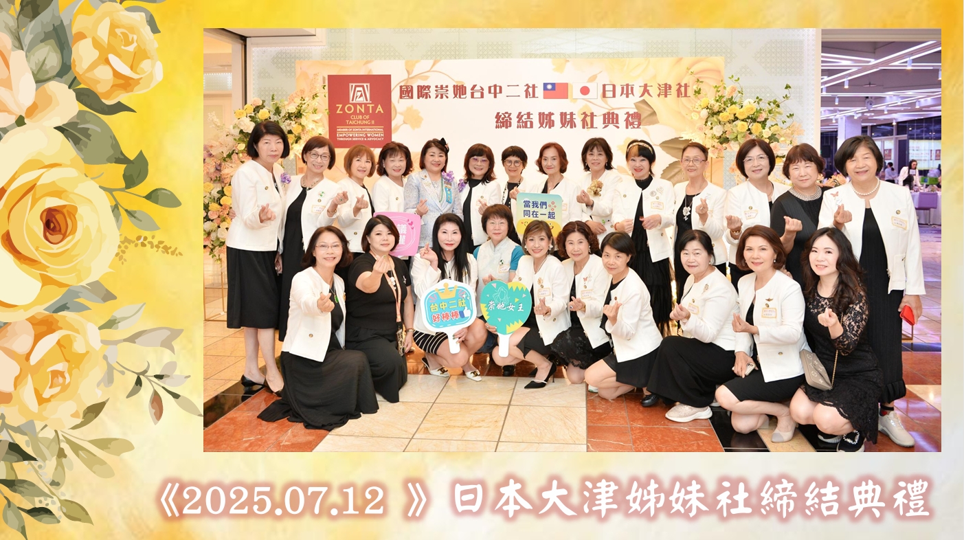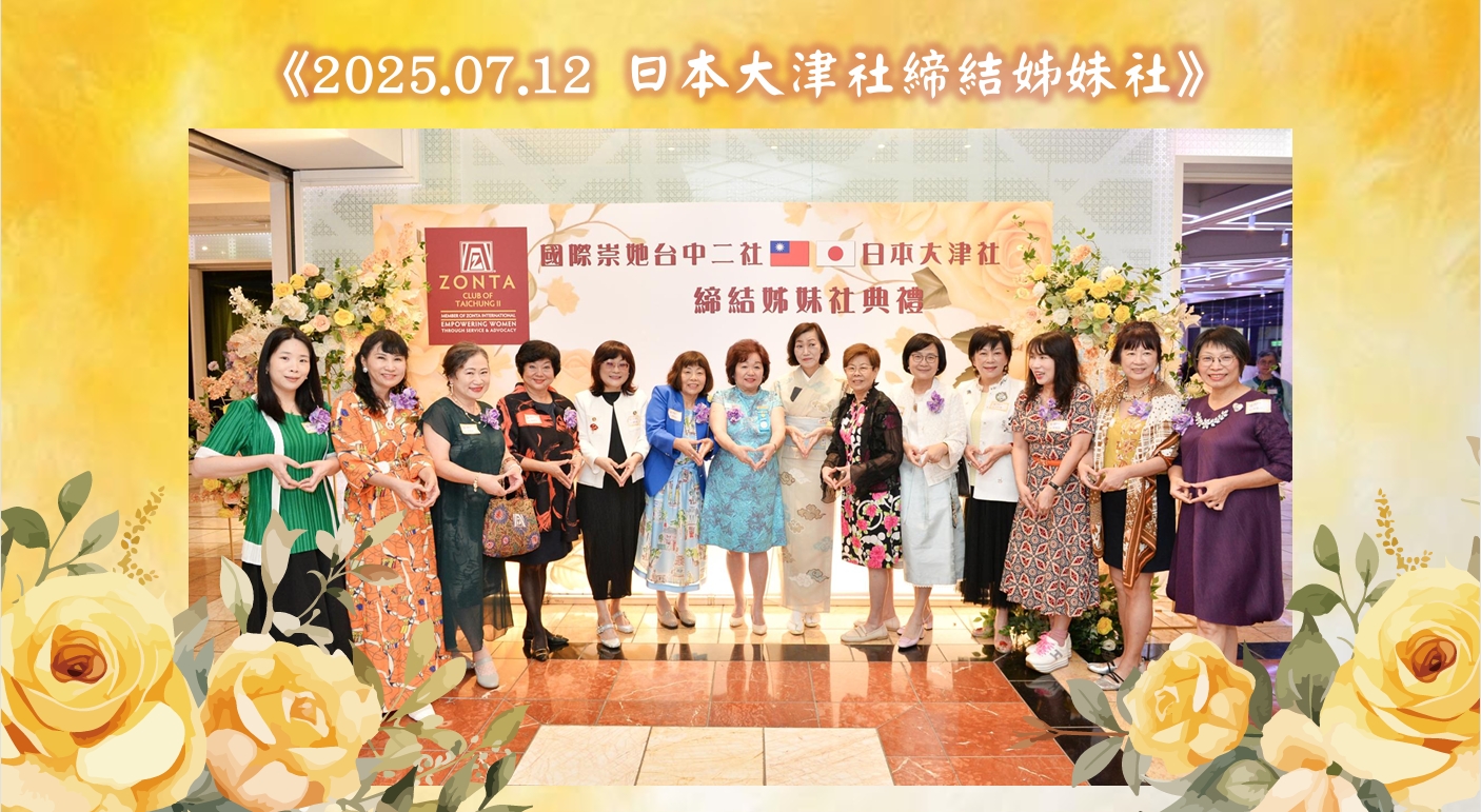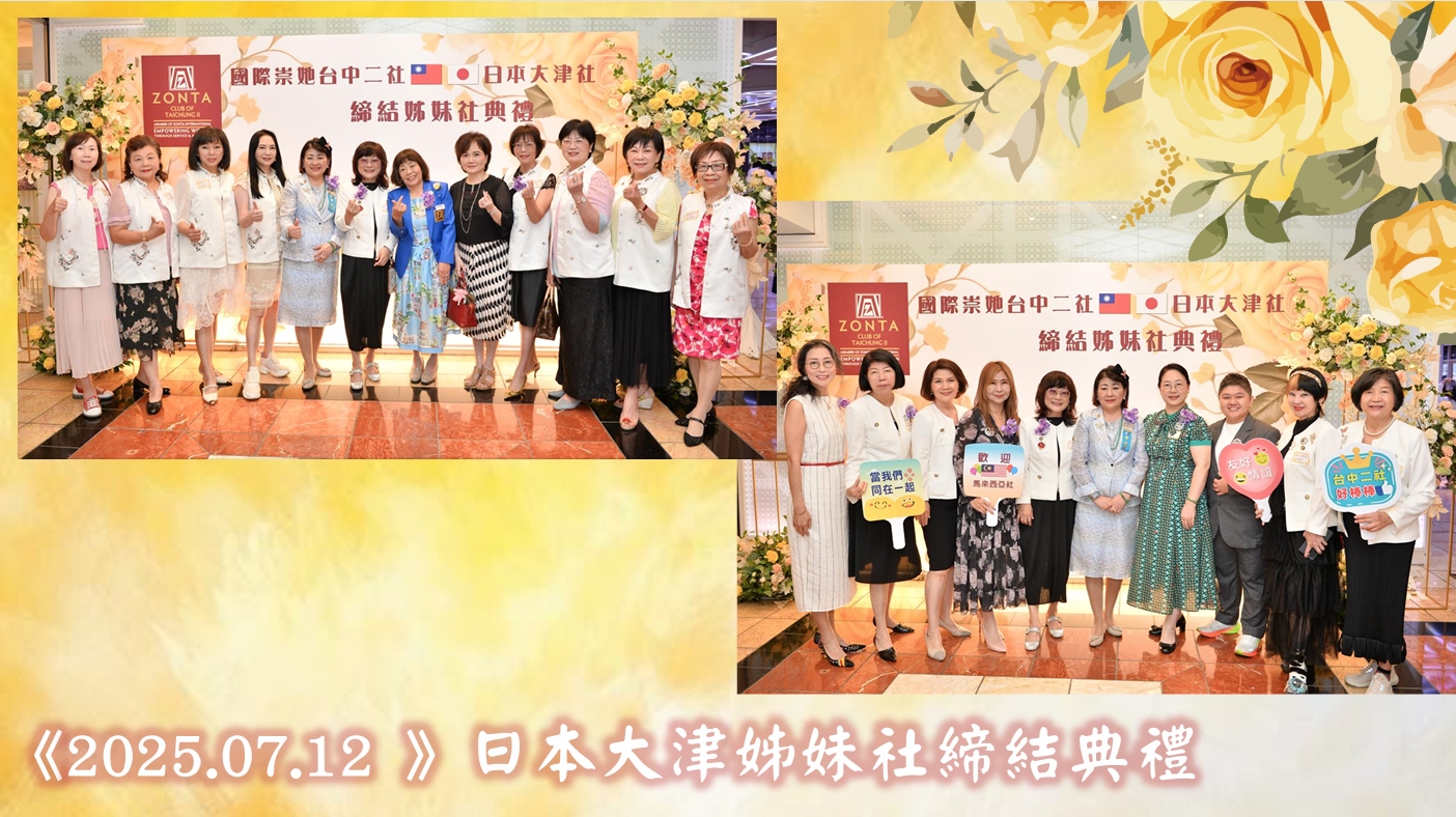 2025年7月11日,日本大津社前來台灣與台中二社締結姊妹社,二社姊妹們熱情接機,邀請大津社姊們一同參與歡迎晚宴。