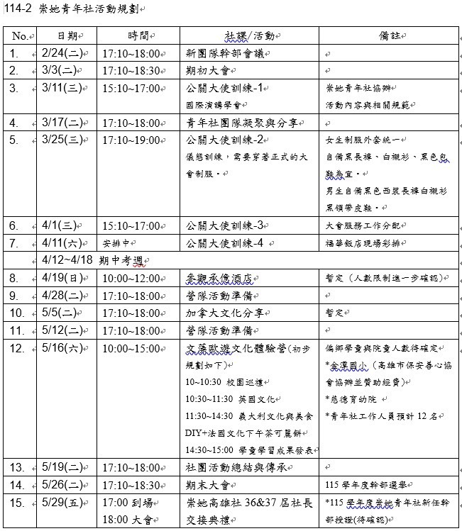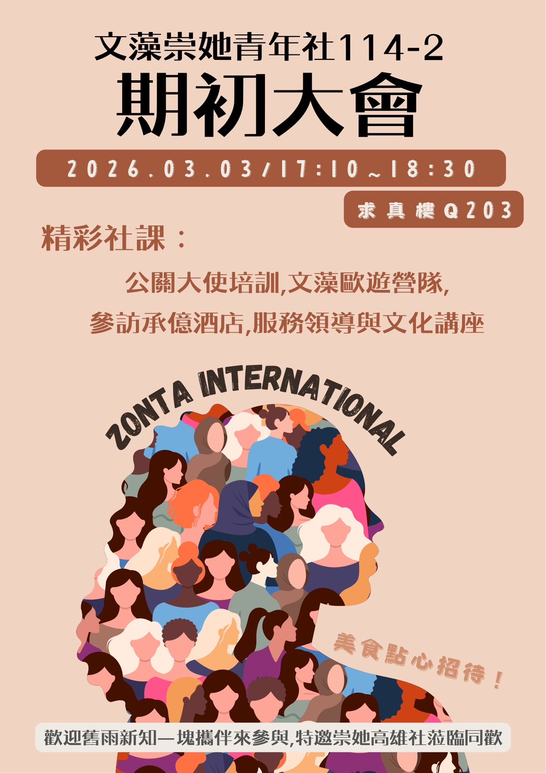 國際崇她高雄社的輔導下,文藻外語大學國際崇她青年社持續成長。近日,在 雪櫻社長帶領下,社員們參與 2026 年月例會,並與青年社員進行交流與分享。