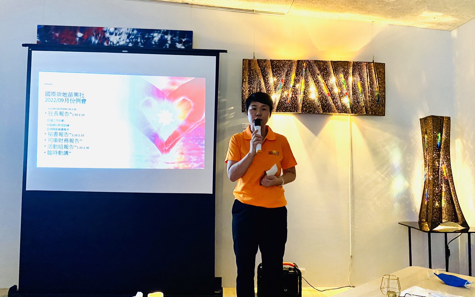 七月八月的社會服務工作之後,國際崇她苗栗社九月份例會和秋季藝術之旅展開了。